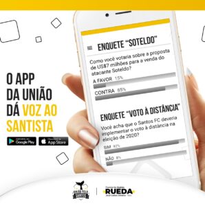 Uma das “novidades” para a gestão seria o aplicativo, que demorou para sair e pouca gente sabe como (e se) funciona. Encontrei até no Twitter da União pelo Santos uma imagem ilustrativa simbólica, mas quase atual.