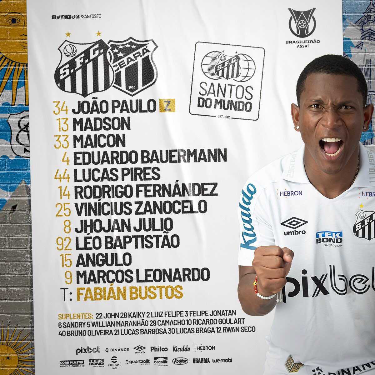Santos escalado com Angulo entre os titulares (Crédito: Divulgação) [...]