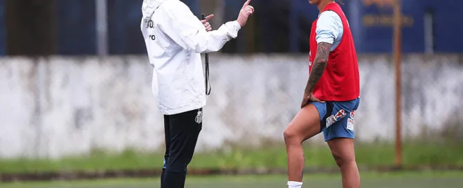O técnico Guilherme Giudice conversa com a atacante Cristiane, [...]