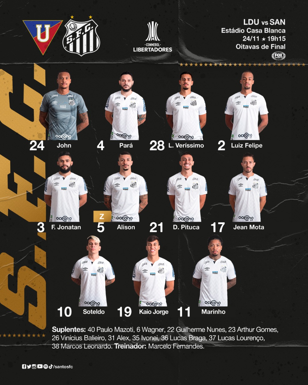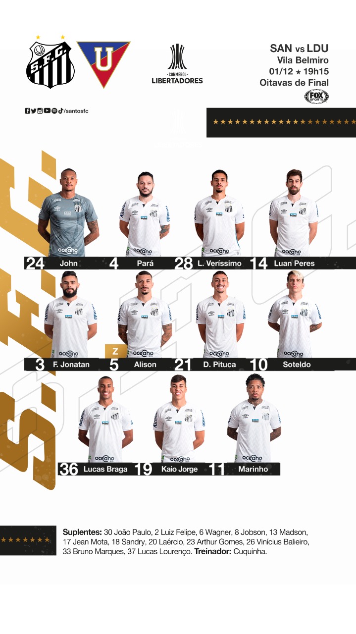 Escalação do Santos para o jogo contra a LDU [...]