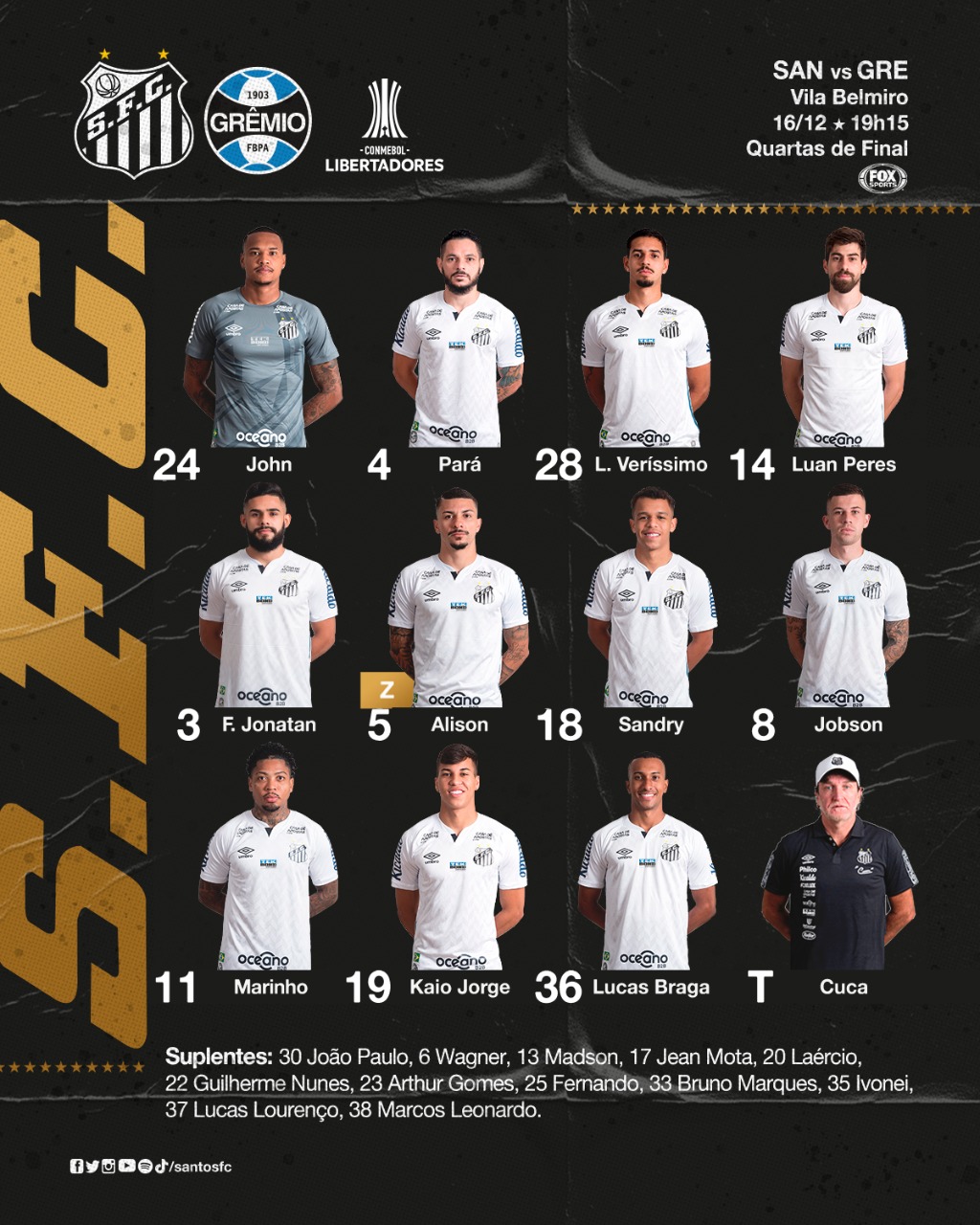 Santos escalado para a grande decisão da Libertadores com surpresa