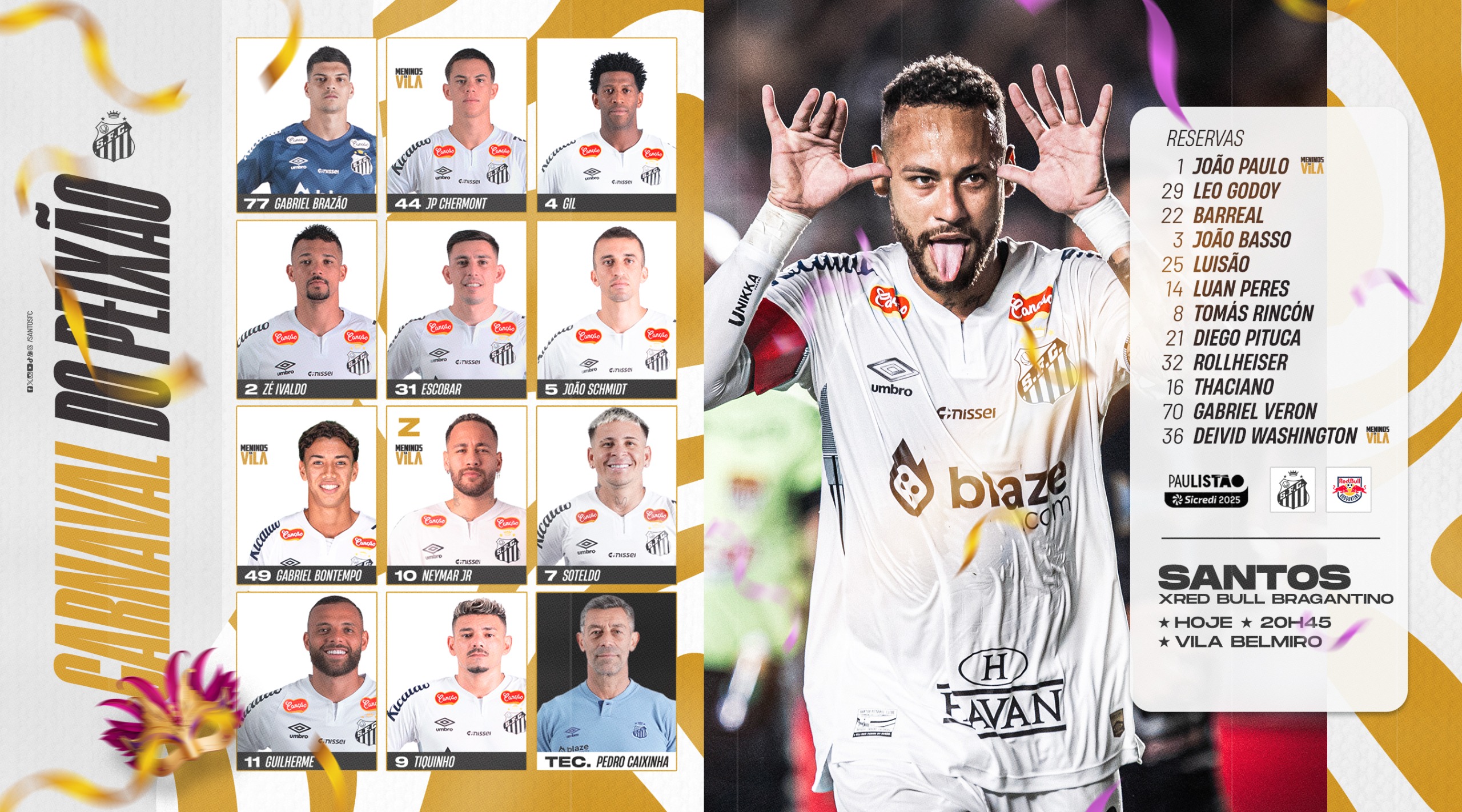 Santos está escalado contra o Red Bull Bragantino (Crédito: [...]