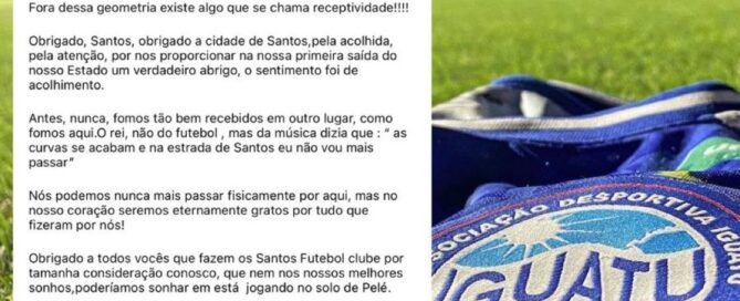Iguatu-CE agradeceu o Santos em carta aberta (Crédito: Reprodução) [...]