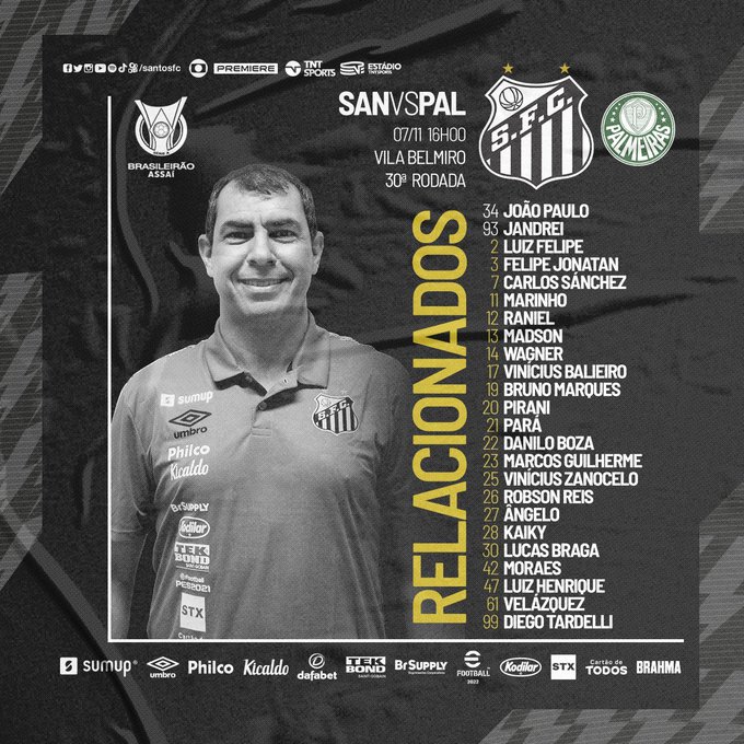 Santos divulga relacionados para o clássico (Crédito: Reprodução) [...]
