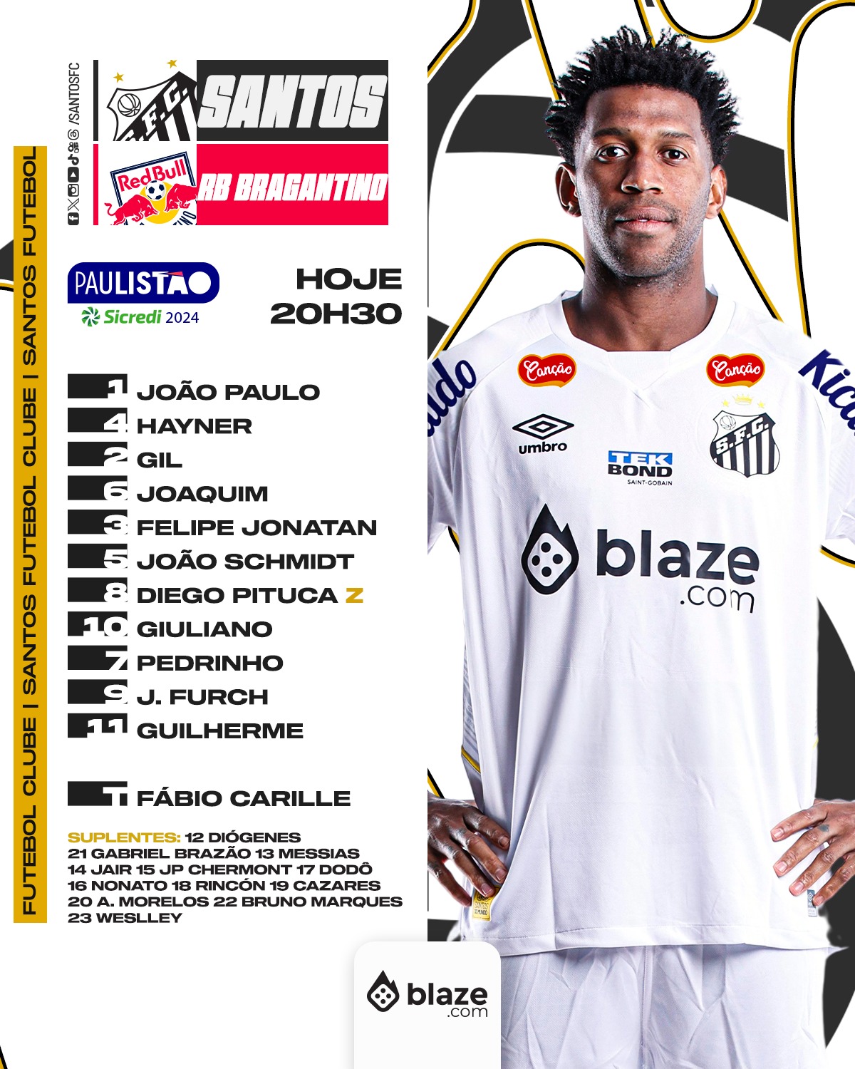 O Santos está escalado para enfrentar o Red Bull Bragantino [...]