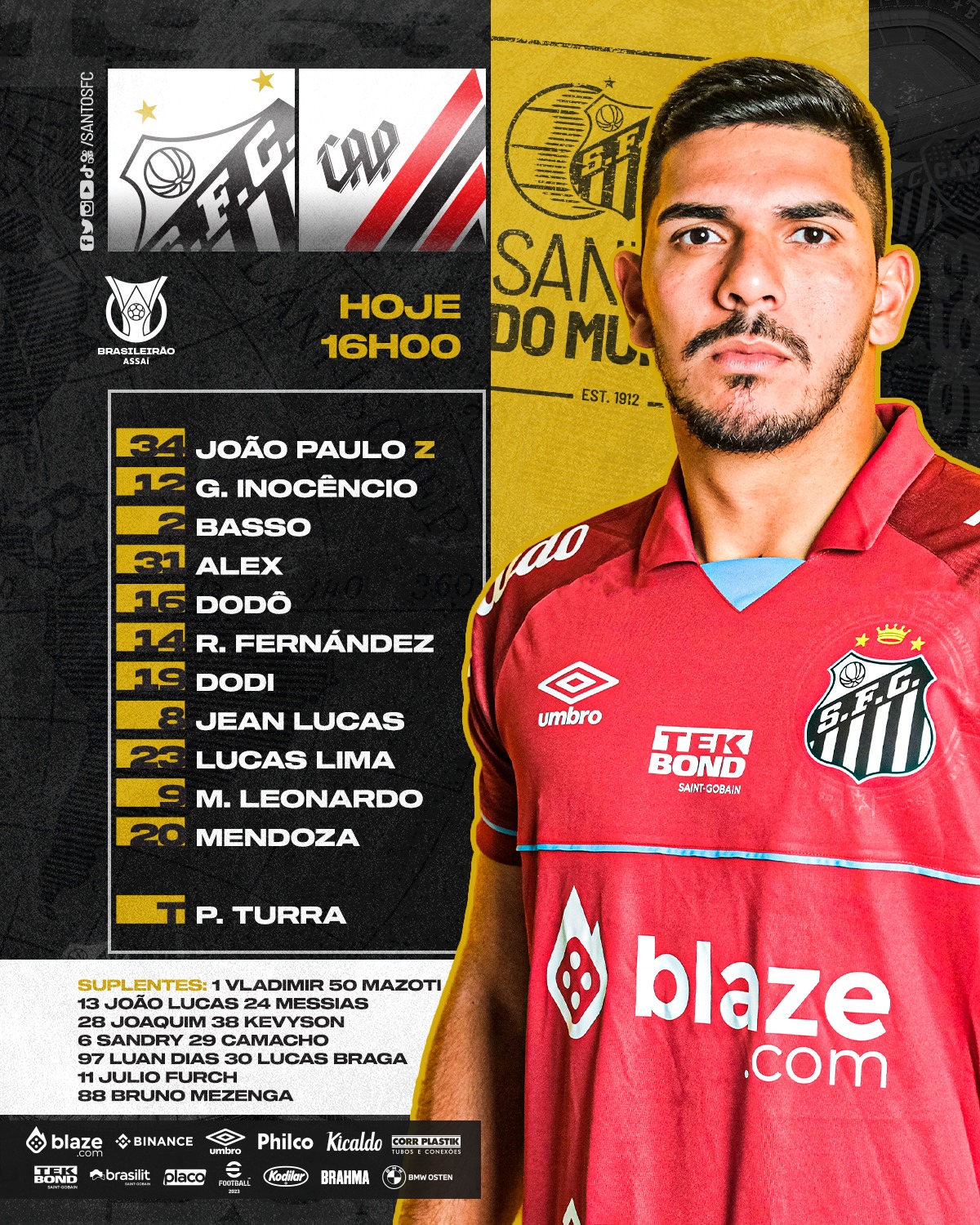 Santos está escalado para enfrentar o Athletico (Créditos: Divulgação) [...]
