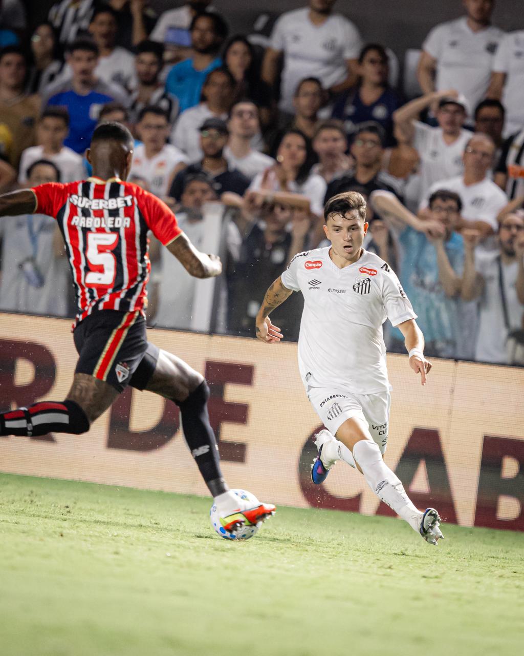 Barreal tenta a jogada no empate do Santos contra [...]
