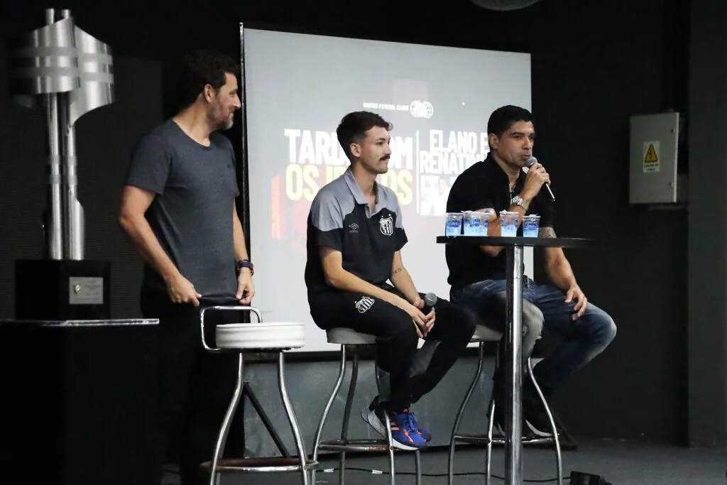 Ídolos do Santos, Renato e Elano realizam palestra para as categorias de base