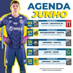 • 19/06 (qua): Santos x Goiás, às 19h, na Vila Belmiro – 11ª rodada da Série B (SporTV e Premiere)