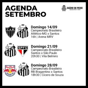 O Santos inicia o nono mês da temporada 2025. O profissional masculino terá três rodadas pelo Brasileirão. As Sereias da Vila terão três duelos pelo Paulista. Na base, as Sereinhas da Vila terão três rodadas da primeira fase do Paulista Sub-20. Já os Meninos da Vila seguem na disputa do Paulista desde o Sub-11 ao Sub-20.
