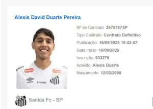 O zagueiro Alexis Duarte foi regularizado no BID (Boletim Informativo Diário da CBF) nesta terça-feira (16). O paraguaio pode estrear pelo Santos diante do São Paulo no domingo (21), às 20h30min, na Vila Belmiro, pela 24ª rodada do Brasileirão. Ele inclusive foi apresentado mais cedo pelo clube em coletiva.