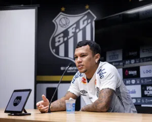 O atacante Gabriel Veron foi o jogador que melhor aproveitou o amistoso deste domingo, entre Santos e Coritiba, no Paraná. Apesar de não ter mercado na vitória santista por 4 a 1, o atacante foi bastante participativo, teve duas boas chances no primeiro tempo e deu um belo passe para Rollheiser no segundo.