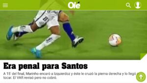Um dos principais jornais argentinos, o Diário Olé, também apontou pênalti não marcado para o Santos diante o Boca Juniors, pelo jogo de ida da semifinal da Taça Libertadores. No título da matéria sobre a partida, o jornal estampou “Era pênalti para o Santos“. A partida terminou empatada sem gols.