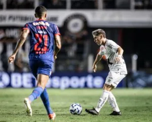 Rollheiser foi o melhor jogador do Santos na derrota para o Red Bull Bragantino (Crédito: Raul Baretta/SantosFC)