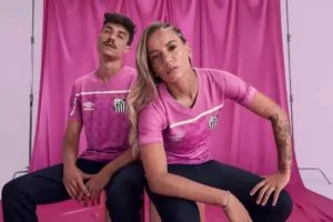 A camisa rosa do Santos da campanha Outubro Rosa foi um sucesso de vendas (Crédito: Divulgação)
