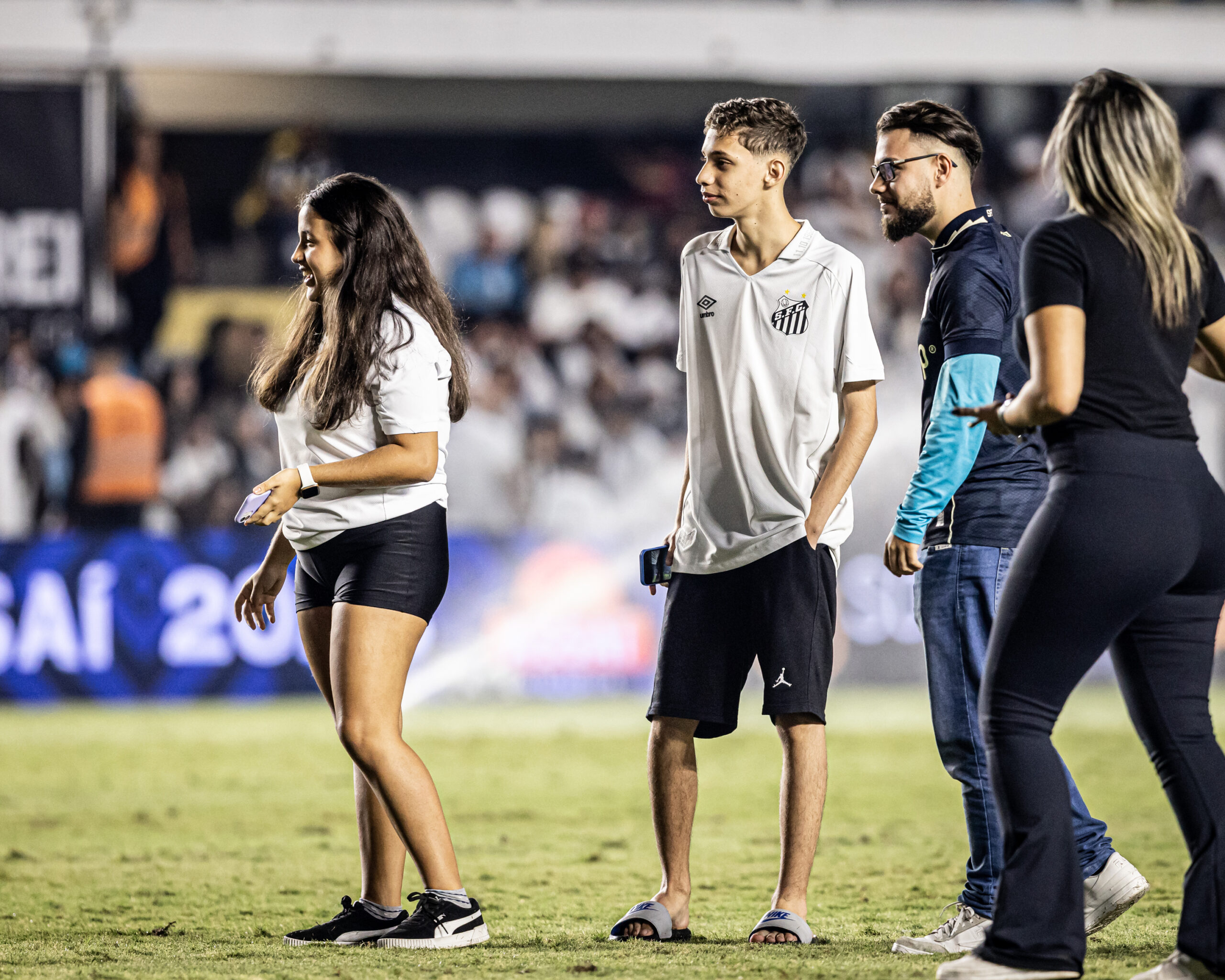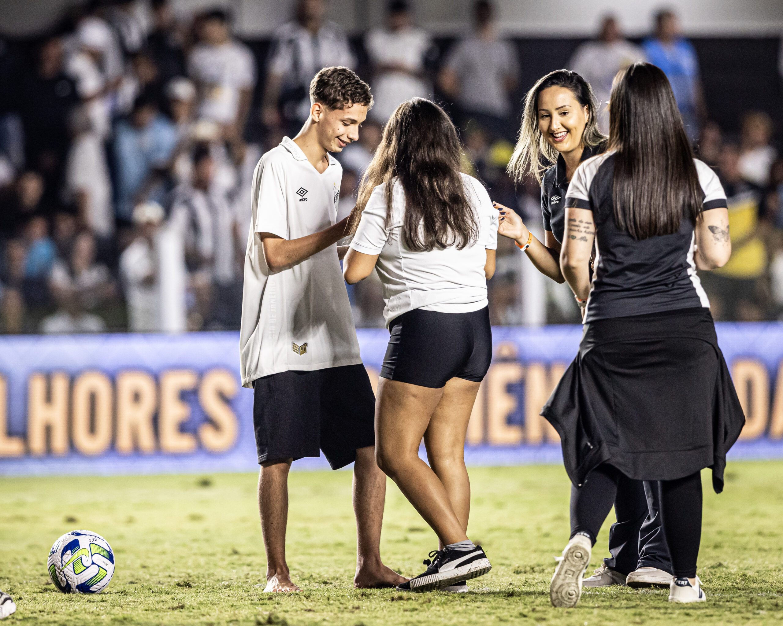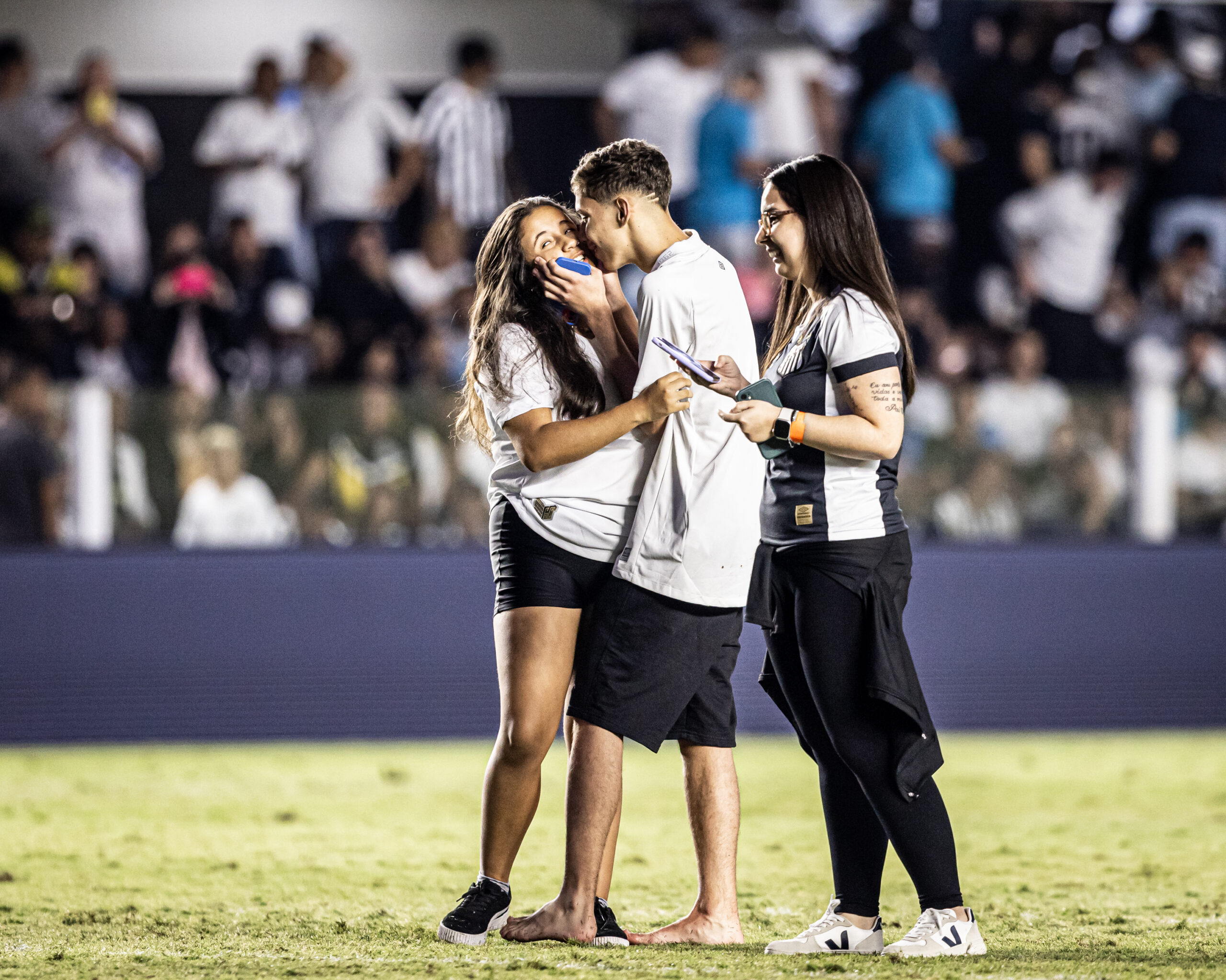 “Eu escolhi o gramado da Vila porque nos conhecemos por conta do Santos. Somos apaixonados pelo Santos. Não teria outro lugar, a Vila é o nosso lugar favorito, então não teria como ser outro lugar. Eu comentei com alguns amigos, eles me ajudaram a resgatar experiência do Sócio Rei. Eu comentei com a menina do Sócio, a Paulinha. Eu fiquei com medo de não dar certo porque estávamos em volta da Vila, e um menino, que não sabia que era a gente, e ele disse ‘vão pedir a menina em namoro no gramado’. Mas ela nem se ligou, ainda bem (risos). A galera sabia, só quem não sabia era ela”, disse Vinicius, ao DIÁRIO DO PEIXE.