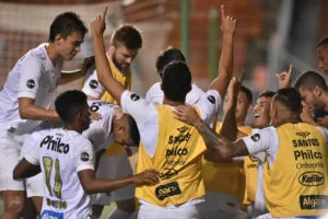 Jogadores do Santos comemoram a classificação para a terceira fase da Copa do Brasil (Crédito: Ivan Storti/SantosFC)