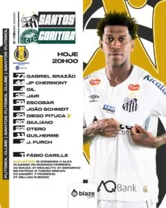 O Santos está escalado para enfrentar o Coritiba nesta quinta-feira pela 17ª rodada da Série B do Campeonato Brasileiro. Para este jogo, o técnico Carille manteve a base que venceu na partida passada e fez apenas uma alteração.