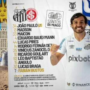 Desta forma, o Santos está escalado com a seguinte formação: João Paulo; Madson, Maicon, Eduardo Bauermann e Lucas Pires; Rodrigo Fernandez, Vinícius Zanocelo e Ricardo Goulart; Léo Baptistão, Lucas Braga e Bryan Angulo.