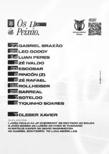O Santos entra em campo com a seguinte formação: Gabriel Brazão; Leo Godoy, Zé Ivaldo, Luan Peres e Escobar; Tomás Rincón, Zé Rafael e Rollheiser, Barreal, Soteldo e Tiquinho Soates.