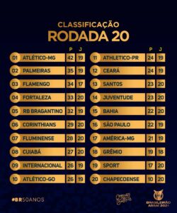 A 20ª rodada do Campeonato Brasileiro 2021 terminou com a oitava melhor média de gols por jogo. Foram 22 bolas na rede em 10 jogos somando uma média de 2,2 gols por partida.
