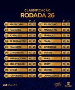A 26ª rodada do Campeonato Brasileiro terminou com a sexta pior média de gols por jogo. Foram 20 bolas na rede em 10 jogos, uma média de 2 gols por partida.