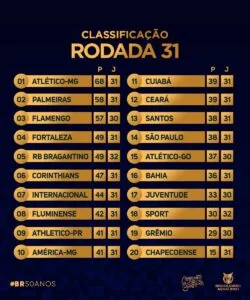 Tivemos sete vitórias de mandantes, uma de visitante e um empate. O Santos subiu três colocações colocações em relação a rodada 30 e terminou na 13ª colocação, somando 38 pontos, com nove vitórias, onze empates e onze derrotas, com 28 gols marcados e 36 sofridos.