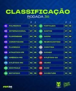 Tivemos cinco vitórias de mandante, duas de visitante e três empates. O Santos manteve a mesma colocação em relação à 35ª rodada e terminou em 12º lugar após o empate diante o Avaí em 1 a 1 na Arena Barueri.
