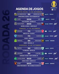 São mais dois confrontos nesta sexta-feira (13) com Goiás x Avaí e Ponte Preta x Ituano. Outros três duelos no sábado (14) com Brusque x Vila Nova, Paysandu x Guarani e Mirassol x Amazonas. A rodada encerra no domingo (15) com o Peixe e Coelho, além de Operário x Coritiba, Chape x Ceará e Sport x CRB.