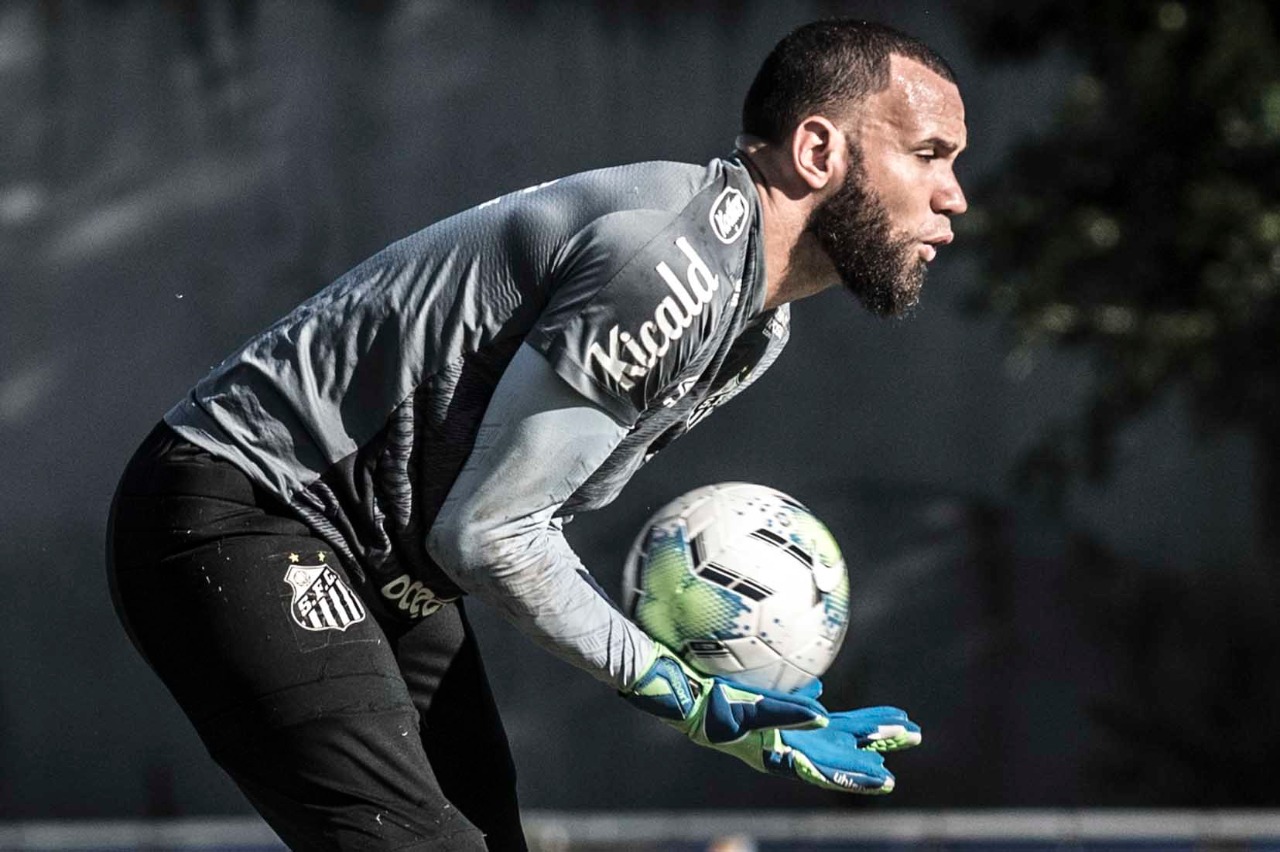 - Everson voltou hoje a treinar com o elenco, mas agora é a última opção para o gol (Crédito: Ivan Storti/Santos FC)