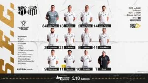 O Peixe está escalado com João Paulo, Madson, Luiz Felipe, Luan Peres e Felipe Jonatan; Diego Pituca, Alison e Jean Mota; Marinho, Kaio Jorge e Soteldo.