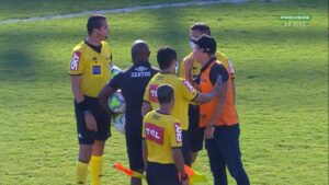 “Ricardo, você errou! Meu time faria o gol. Você me prejudicou, isto é uma sacanagem. Você vai ver na TV. Estou cansado de ser prejudicado. Sempre contra o Santos. Você errou, você errou, reconheça!”.