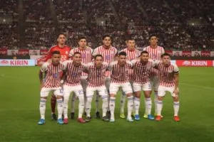 Derlis González (10) foi titular do Paraguai no amistoso contra o Japão (Crédito: Federação Paraguaia)