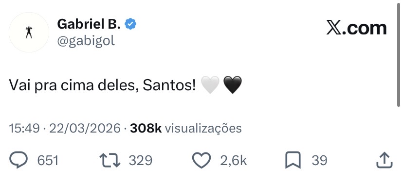 Já Gabigol postou uma foto com as linhas traçadas em favor do gol santista. Antes da partida, Neymar publicou uma foto assistindo à partida ao lado de uma camisa do Peixe no Instagram e o Gabriel Barbosa ainda postou “Vai para cima deles, Santos” também no Twitter.