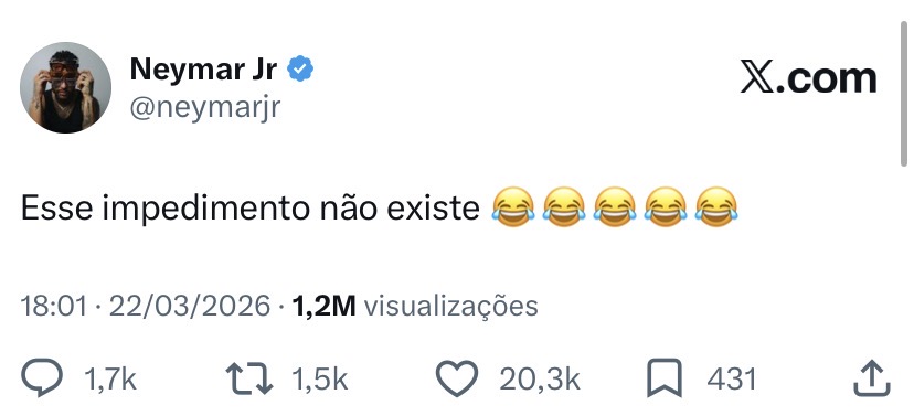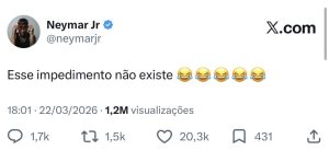 “Esse impedimento não existe”, publicou Neymar no Twitter.