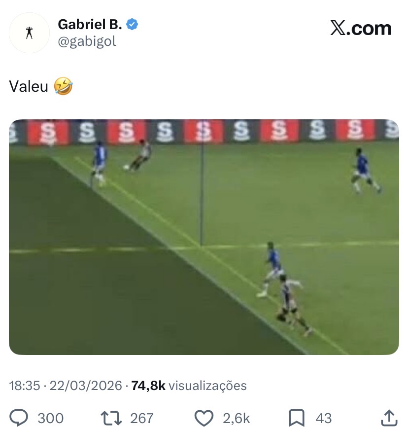 O meia-atacante Neymar Jr e atacantes do Gabriel Barbosa, desfalques do Santos, reclamaram do gol anulado do Santos por impedimento no empate sem gols com o Cruzeiro, no Mineirão, pela oitava rodada do Brasileirão, neste domingo (22), através das redes sociais. O camisa 10 foi baixa para fazer um controle de carga, visando prevenção e recuperação, enquanto o camisa 9 não atuou por força de contrato já que está emprestado pela própria Raposa.
