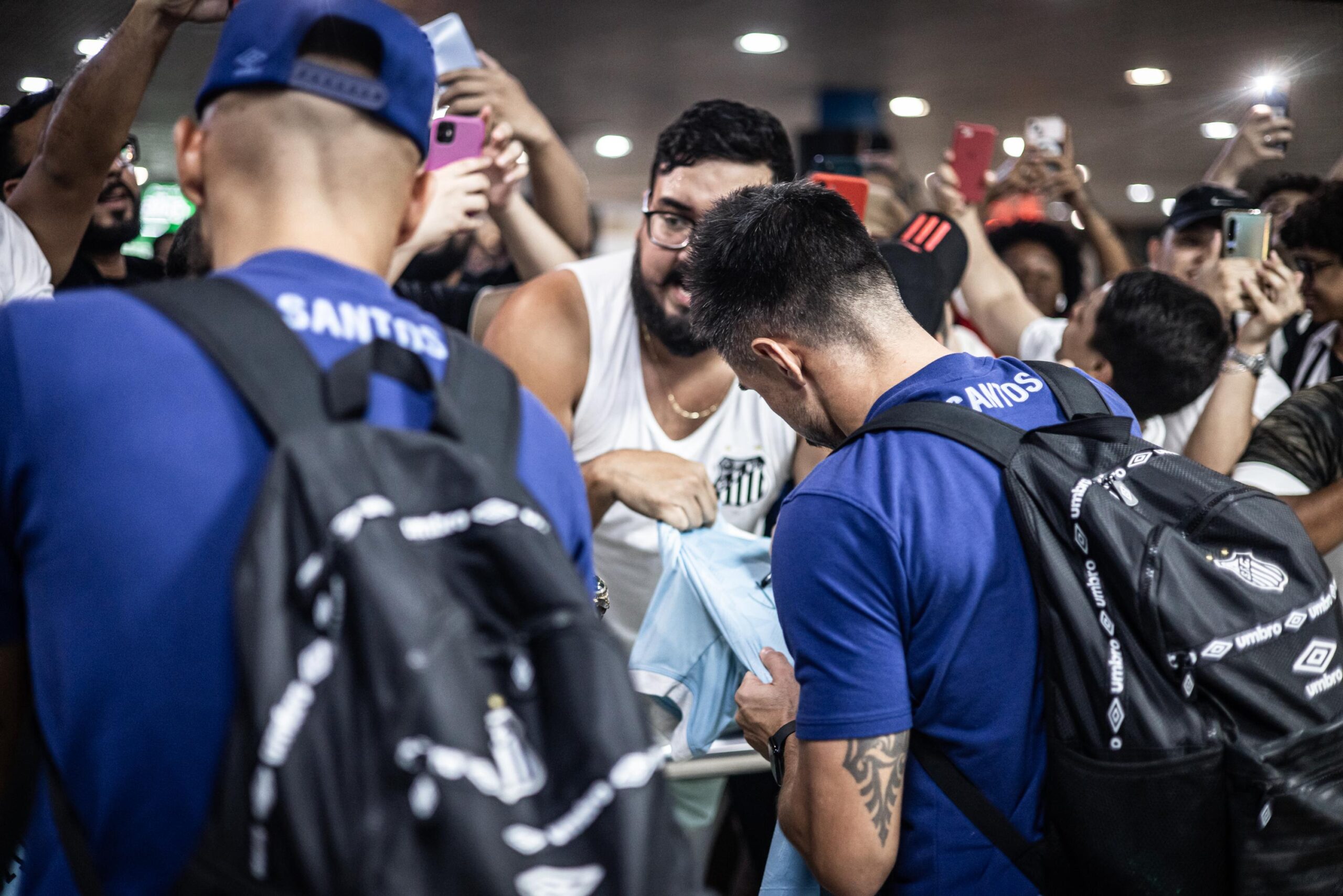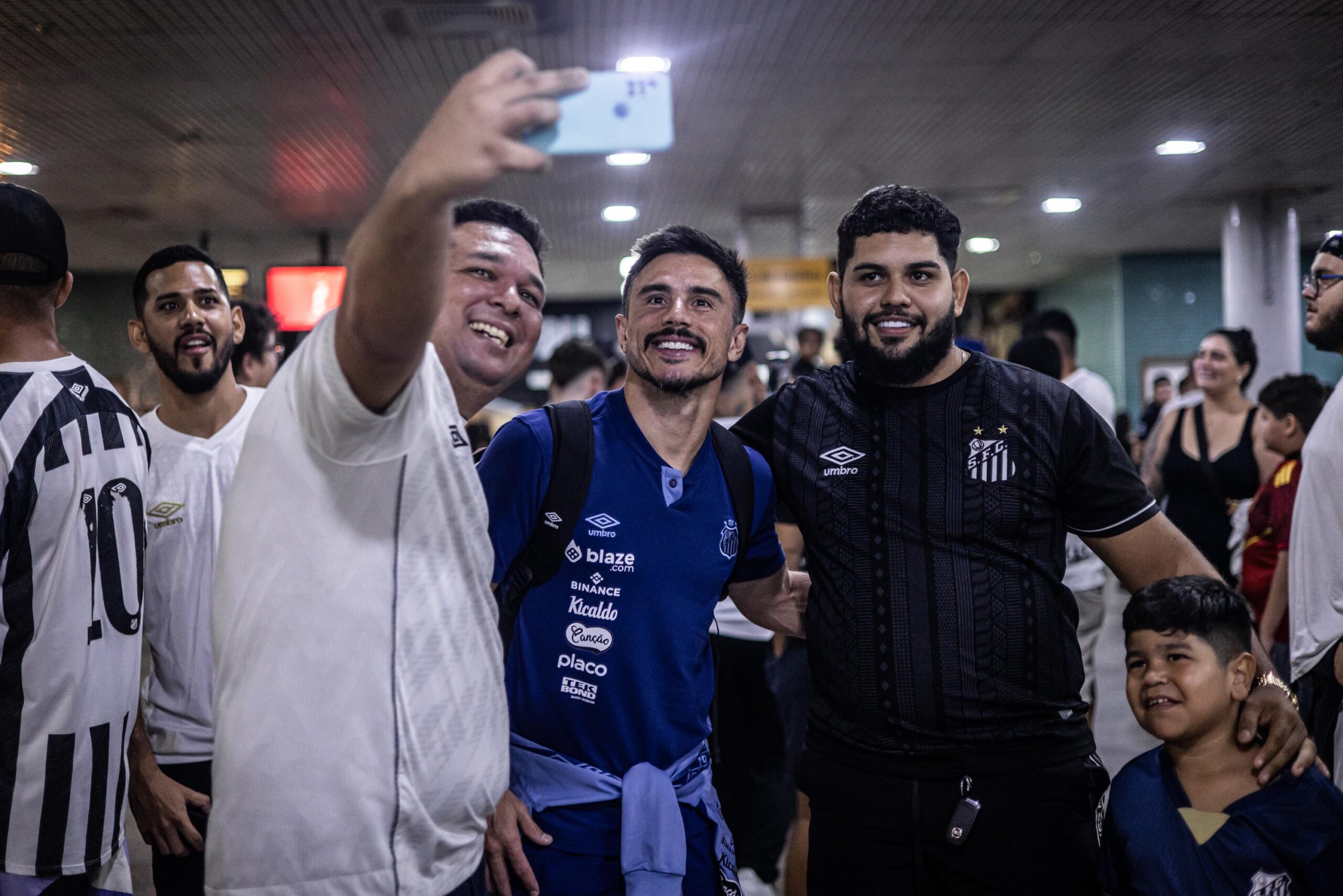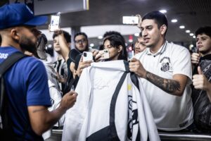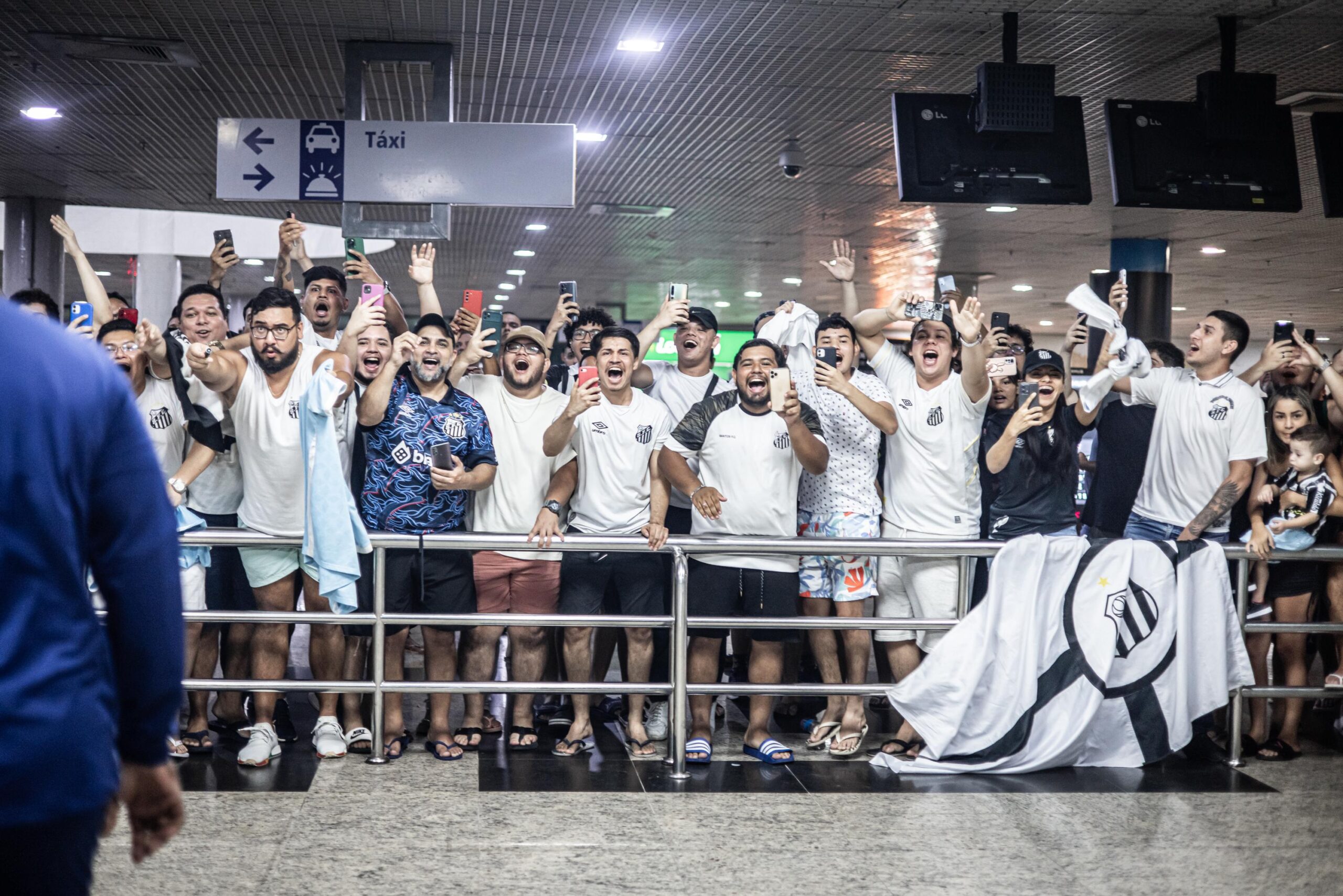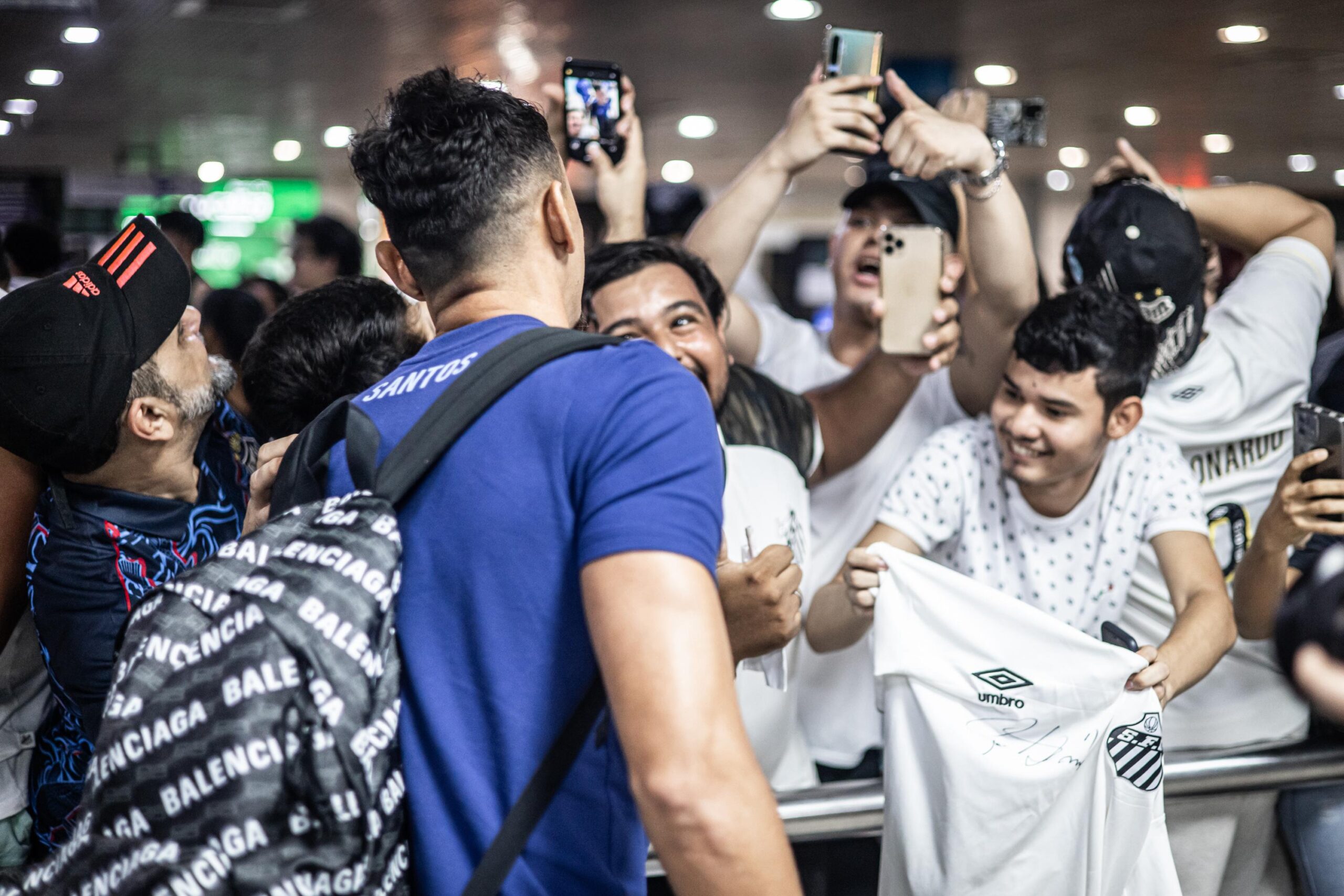 O elenco do Santos foi recebido com festa no aeroporto Eduardo Gomes, em Manaus, na madrugada desta sexta-feira. O Peixe enfrenta o Amazonas neste sábado, às 17 horas, na Arena da Amazônia, pela quarta rodada da Série B do Campeonato Brasileiro.