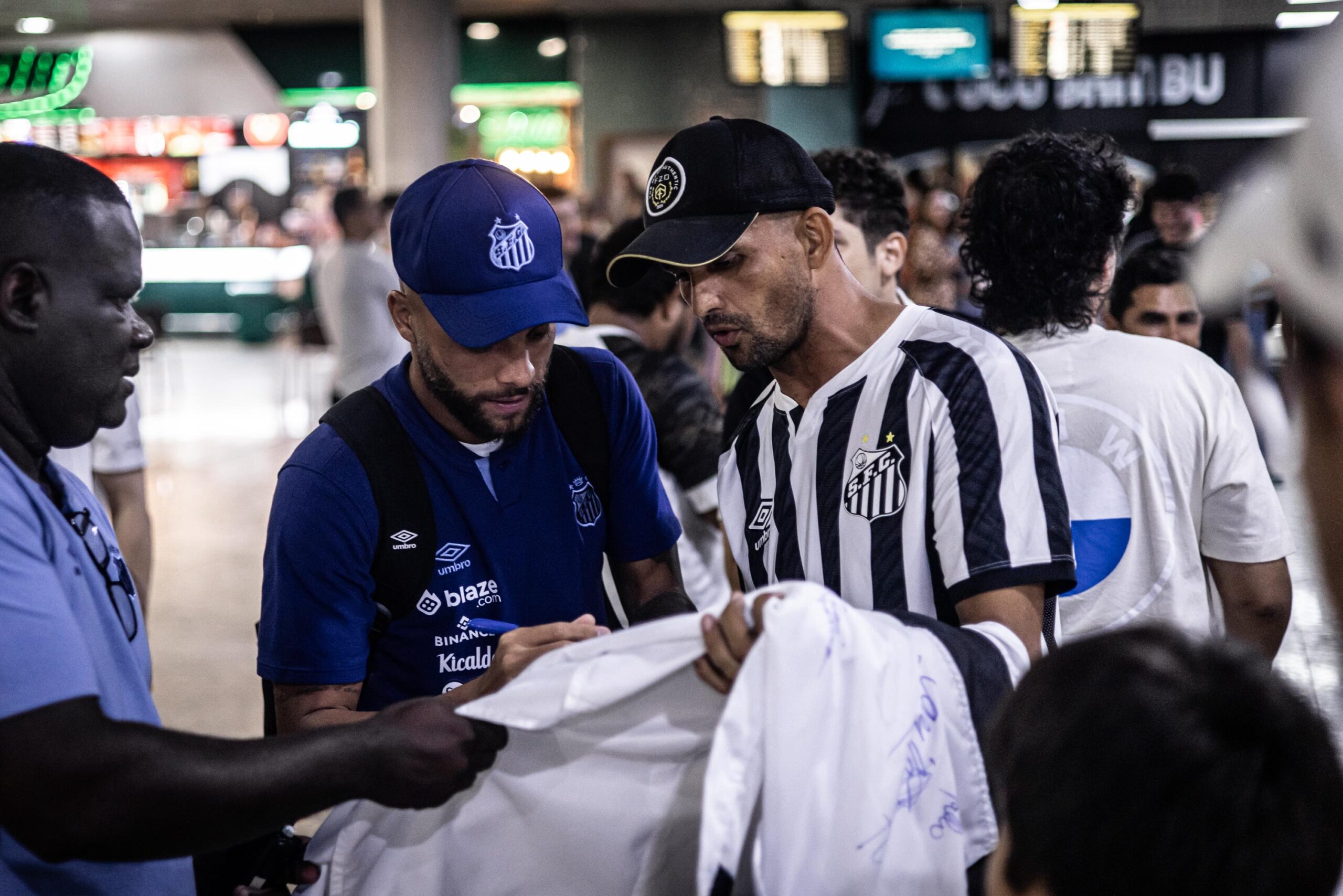 Dezenas de torcedores do Santos, de todas as idades, foram até o aeroporto para recepcionar a equipe. Os jogadores foram muito solícitos e não se importaram em tirar fotos e dar autógrafos para os santistas, mesmo com o cansaço da viagem e horário. O Peixe treina em Manaus no final da tarde desta sexta-feira e a atividade também deverá ser acompanhado por muitos torcedores.