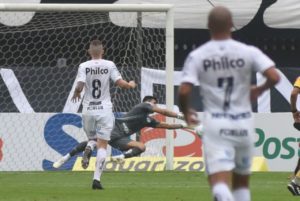 O goleiro João Paulo fez boas defesas e foi um dos destaques do Santos neste domingo (Crédito: Ivan Storti/SantosFC)