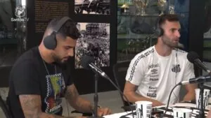Léo Baptistão esteve no SantosCast com Emerson Palmieri (Crédito: Reprodução)