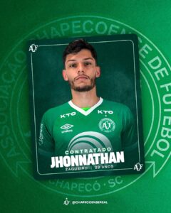 Emprestado pelo Santos, o zagueiro Jhonnathan foi anunciado na Chapecoense para a disputa da Série B do Campeonato Brasileiro. O defensor começou a temporada cedido ao Água Santa para a disputa do Paulistão. À princípio, seguiria no time de Diadema para jogar a Série D, mas foi liberado para competir uma competição ‘maior’.