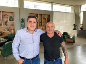 Sérgio Sette Cârama, presidente do Atlético, e Jorge Sampaoli. Técnico comando o Peixe em 65 jogos (Crédito: Reprodução)