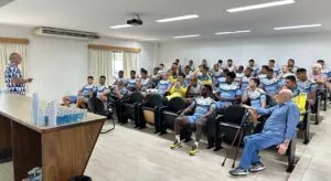 O coordenador esportivo do Santos, Paulo Roberto Falcão, comandou uma conversa entre o elenco santista, o departamento de futebol, diretoria e o Comitê de Gestão. O grande objetivo do Rei de Roma é traçar metas e avaliar a temporada que vem sendo feita até aqui. Esse tipo de interação é frequente no CT.