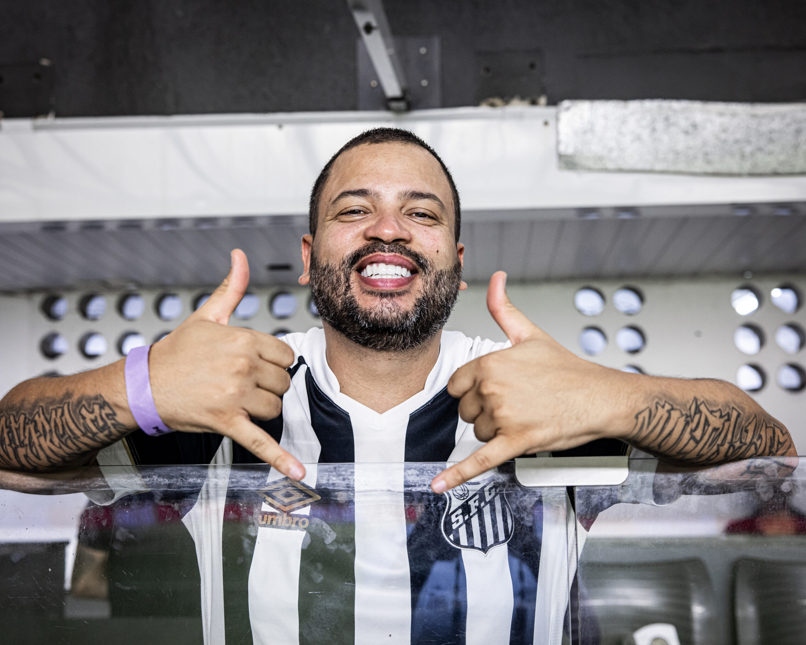 - Rapper Projota no camarotes da Vila (Crédito: Raul Baretta/Santos FC)