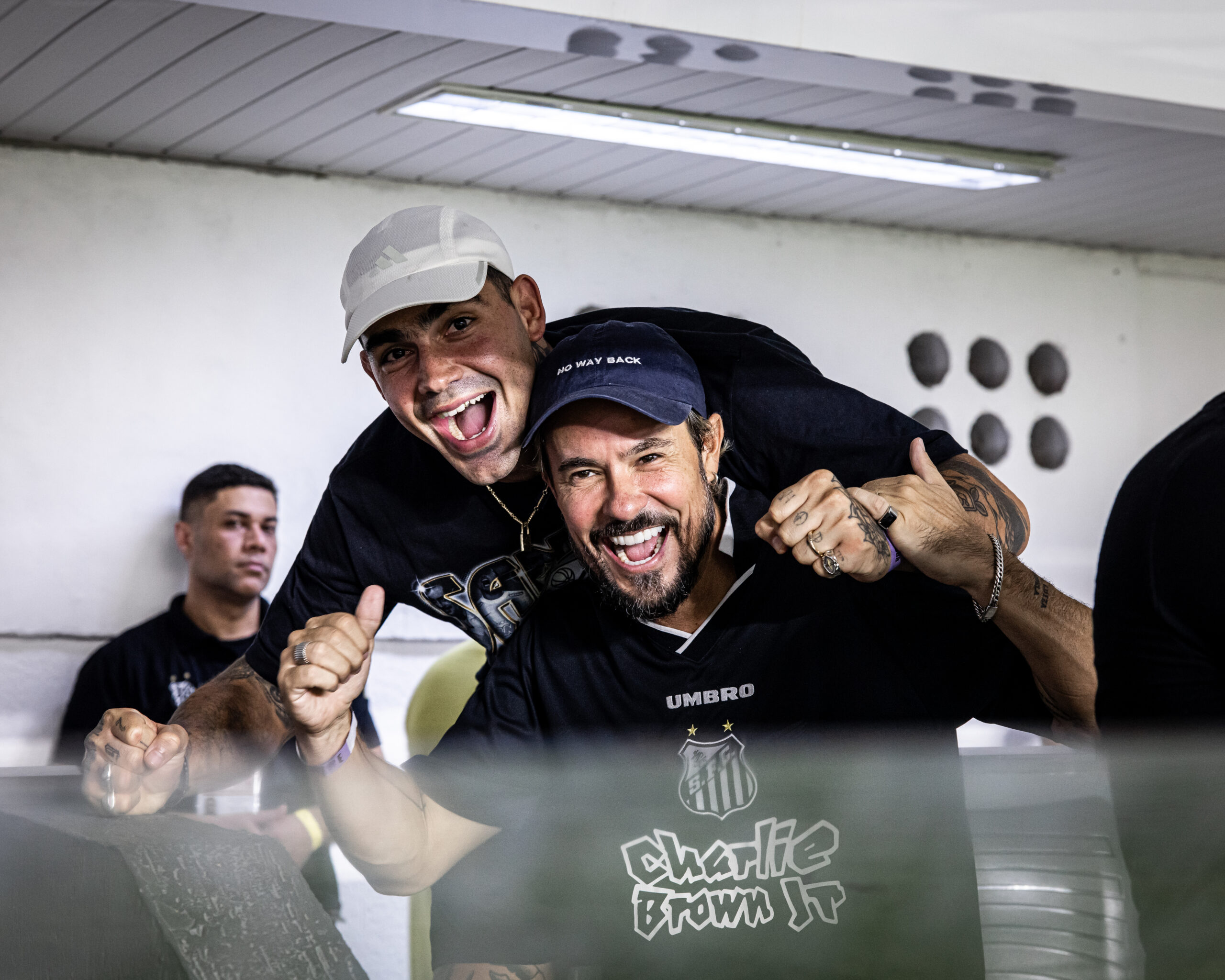 - Ator Paulo Vilhena e influenciador Caio Cabral nos camarotes da Vila (Crédito: Raul Baretta/Santos FC)