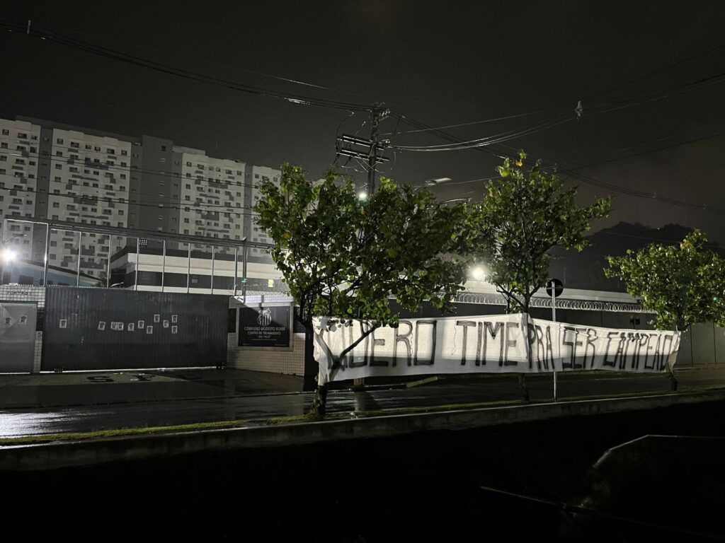 Revoltados com a situação do Santos, torcedores do clube espalharam diversas faixas e cartazes pela cidade entre a noite desta quarta-feira e madrugada de quinta. As mensagens tinham como principal alvo o presidente do clube, Marcelo Teixeira. Veja nas imagens algumas faixas, que foram removidas horas após a colocação.