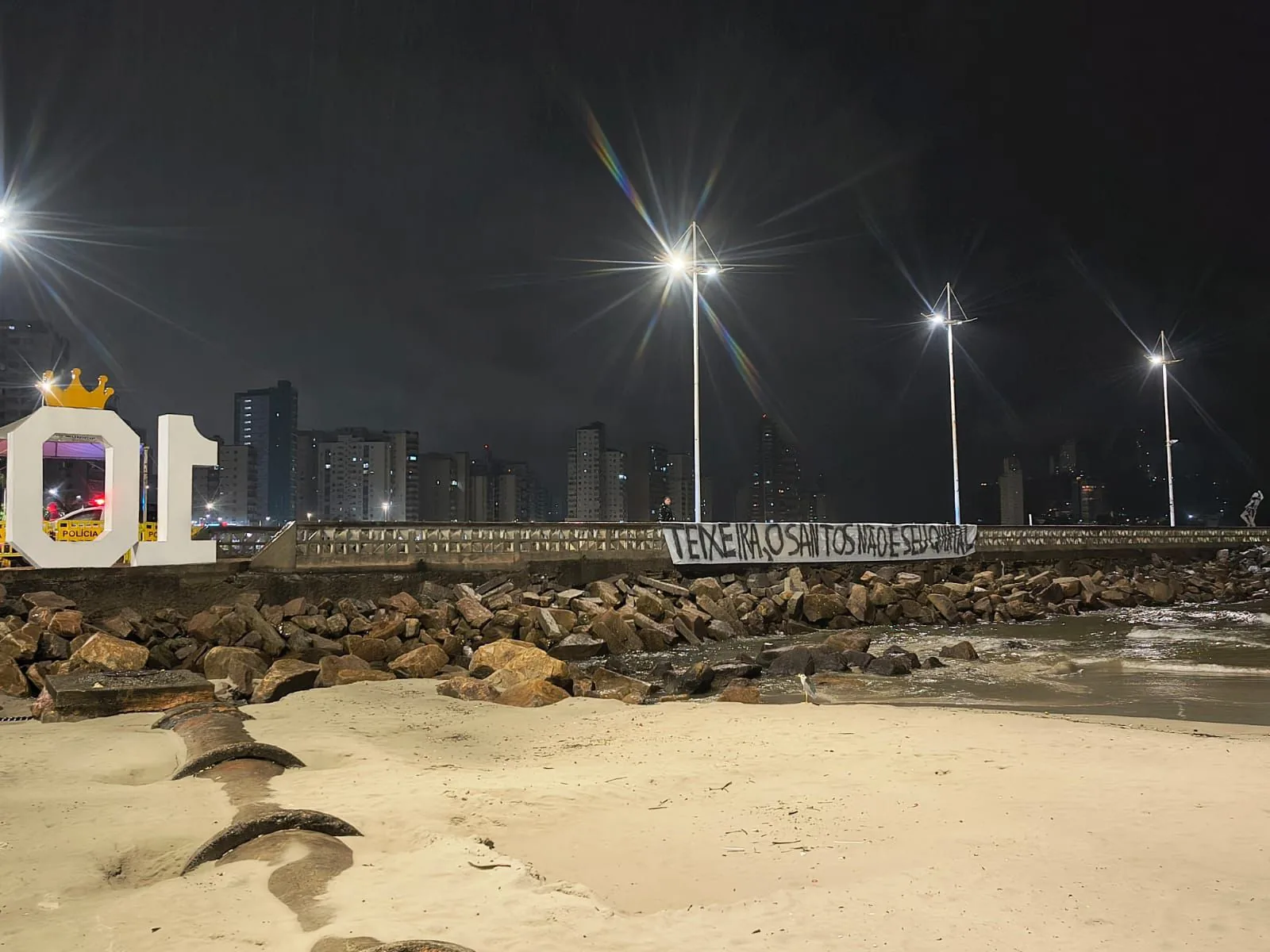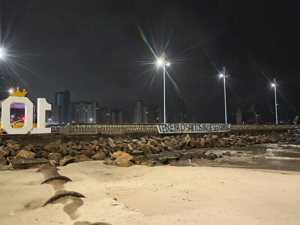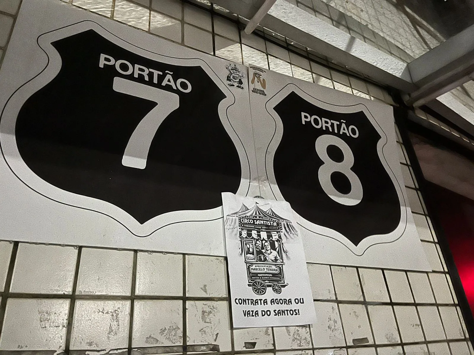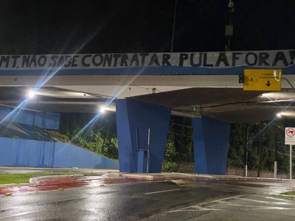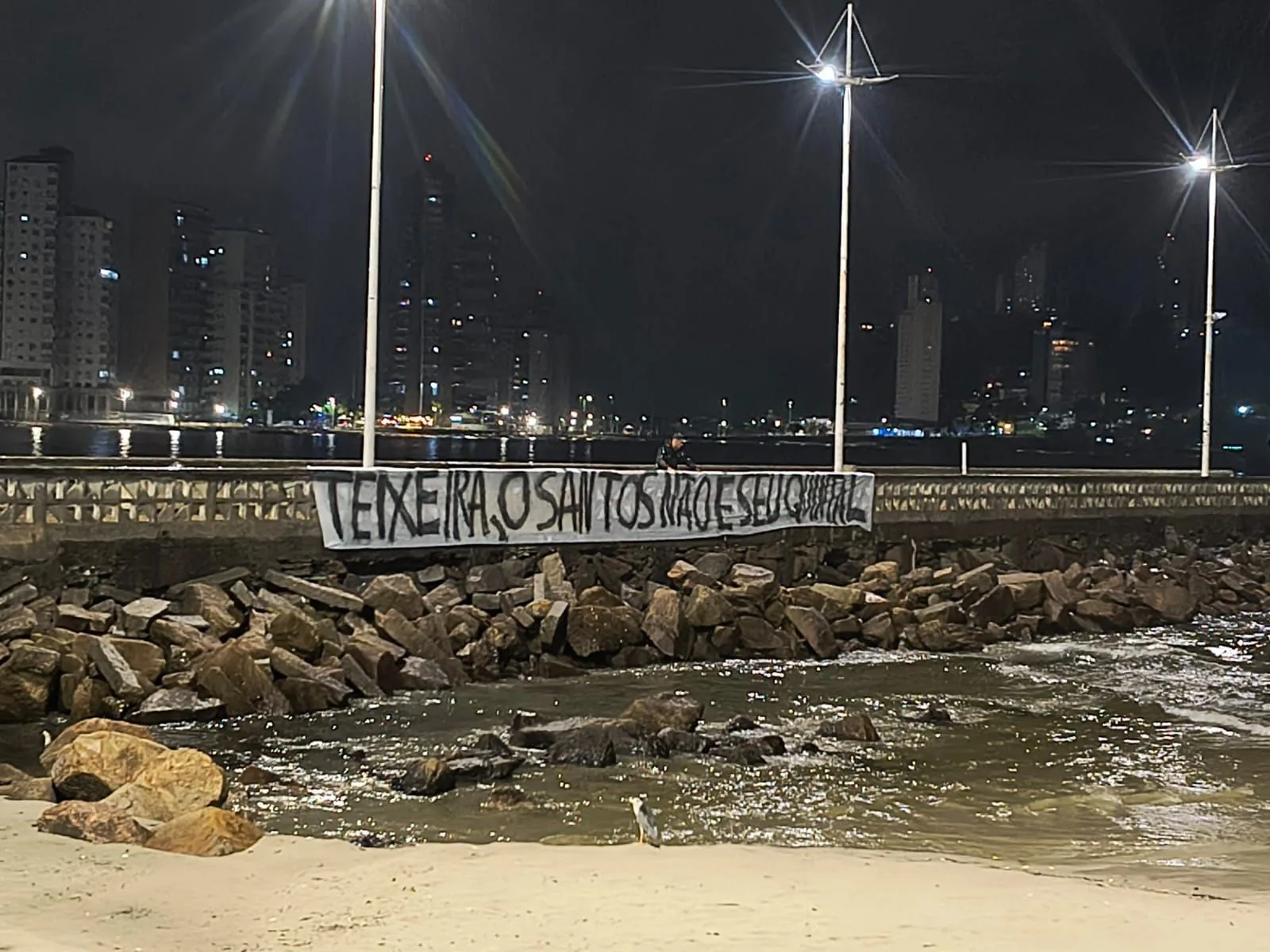 Revoltados com a situação do Santos, torcedores do clube espalharam diversas faixas e cartazes pela cidade entre a noite desta quarta-feira e madrugada de quinta. As mensagens tinham como principal alvo o presidente do clube, Marcelo Teixeira. Veja nas imagens algumas faixas, que foram removidas horas após a colocação.
