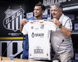 O Santos apresentou o atacante Gabriel Veron em coletiva nesta terça-feira (11). O jogador chega por empréstimo do Porto (Portugal) até o fim do ano, com opção de compra ao final do vínculo. Com a camisa 70, ele comentou sobre as negociações para vir ao Peixe e revelou que vinda não teve a ver com o retorno de Neymar Jr.
