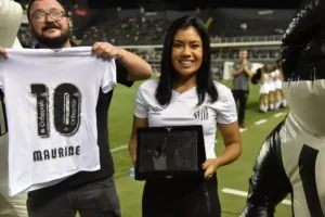 Maurine foi homenageada em sua despedida do Santos em 2019 (Crédito: Ivan Storti/Santos FC)