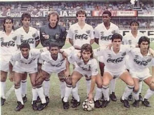 Time do Peixe no começo dos anos 90. Ranielli está agachado, do lado esquerdo de Paulinho MacLaren (Crédito: Reprodução)